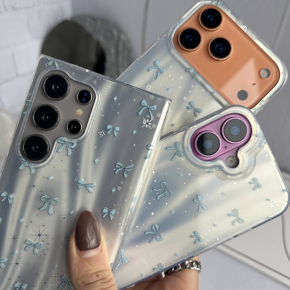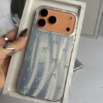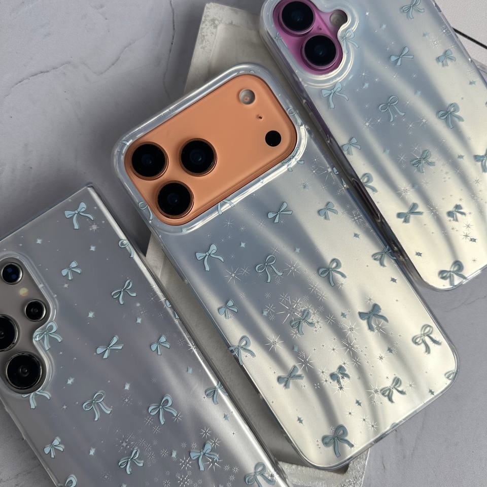> طراحی مرواریدی با افکت براق و پاپیون‌های آبی لطیف، این قاب‌ها رو به انتخابی خاص برای کسایی تبدیل کرده که دنبال استایل فانتزی و دل‌نشین هستن.